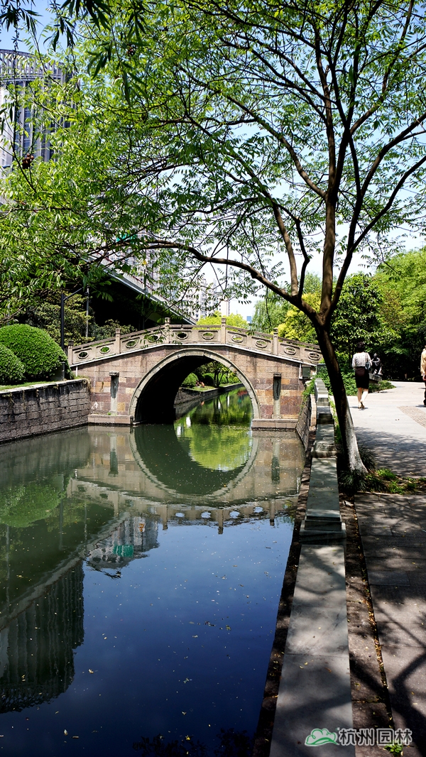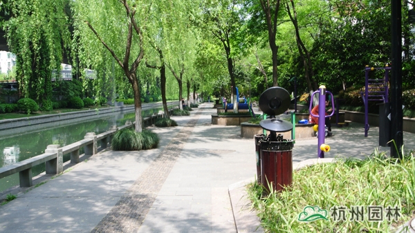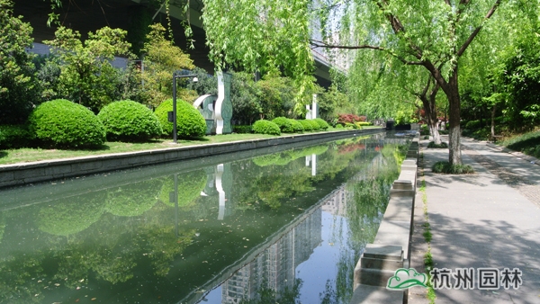 该工程位于杭城南部,施工范围为仓河下路至凤山桥,内容包括绿化种植、土方、园路平台、廊架栈道、雕塑基础、河道清淤等。工程在充分尊重历史文脉的基础上,再现了生态优美的自然环境,绿意盎然的植物、舒缓平坦的园路、饱经沧桑的古桥、栩栩如生的雕塑,与沿街的粉墙黛瓦、名人故居等遥相呼应,千年中河美景,尽显无遗。