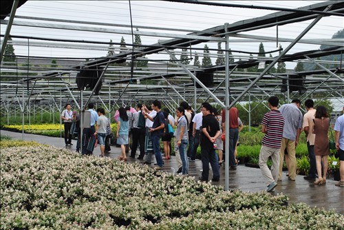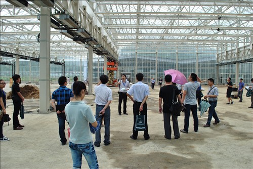 行业经销商代表们参观青山湖•花园中心玻璃温室大棚