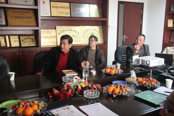 在公司会议室,说起来访的原因,对方说,听了3月11日总经理张炎良在山东省园林建设管理工作会议上的演讲,公司的施工技术、植物配置、硬质铺装等给他们留下了深刻的印象,所以这次特地来到公司,想就这方面的情况作更详细的了解,也希望通过更进一步的交流,推进双方在园林工程施工、景观设计等方面的合作。