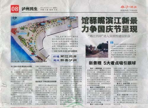 目前,工程改造后的景观效果突出,有悬挑回廊、泸州版图浮雕等多处看点,场地空间内深厚的意境和文化底蕴提升了人们的生活品质,得到了当地市委、市政府的高度认可。