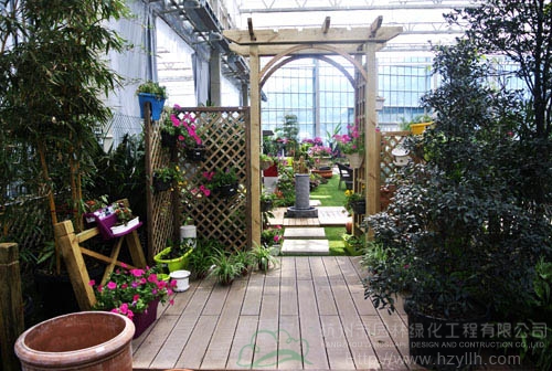 青山湖•花园中心中庭景观是花园中心所有产品设计搭配及使用的集中展示,目的是让顾客能够身临其中,感受不同风格庭院的魅力所在,了解各种材料和植物的使用搭配方式,从而使其对自身庭院需求更加明朗。为了在有限的空间里尽可能地展示多种风格,没有将某一种庭院风格做到极致完整,而是选取了多种庭院风格里比较有代表性的小景元素加以表现,再通过不同的过渡方式,将所有景观有机地串连起来。行走其间,中式庭院常用的木质景亭、古旧的老石板,欧式风格的造型树木、铁艺花架,深爱园艺爱好者喜爱的漂亮的容器、小盆栽……不同的风格,不同的意境,带给人不同的视觉体验和心灵感悟。