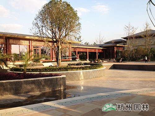 吴江东太湖温泉度假酒店项目景观工程(一标段)位于吴江市松陵镇滨湖路三船河大桥附近,该工程是以景观绿化为主的综合性项目,施工面积约10万平方米,施工内容包括绿化种植、硬质铺装、园路施工、景观小品工程、桩基工程、给排水系统工程及景观照明等。工程施工内容多,工程量大,工艺相对复杂,对施工技术的要求高。该工程质量标准为确保省优,争创鲁班;安全生产和文明施工要求为确保省级文明工地,争创国家级AAA级安全文明标化诚信工地。