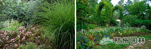木门景观,以细叶芒和溲疏做映衬。