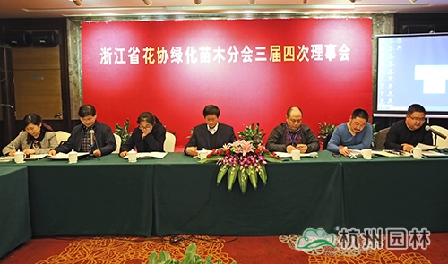 3月18日,2017中国(萧山)花木节期间,浙江省花卉协会绿化苗木分会三届四次理事会在萧山金马饭店召开。分会首席顾问何云芳,副会长朱锡君、陈福来、竺君,副秘书长宣子灿、沈伟东、徐耀庭、李金昌,特邀嘉宾吴世光等出席会议,来自全省各地的理事单位代表40余人参加了会议。会议由分会秘书长胡绍庆主持。