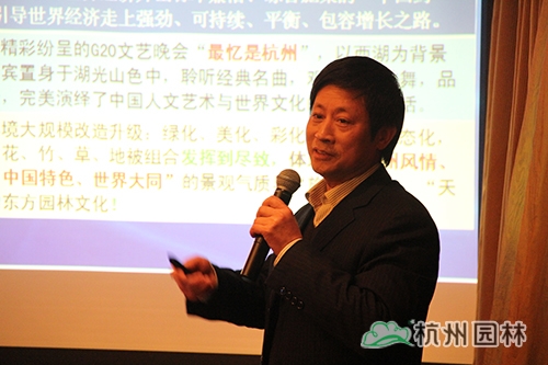 会议特邀嘉宾、杭州园畅商务咨询有限公司CEO吴世光以《从杭州G20景观应用看苗木产业供给侧改革与市场新格局》为主题,分享了他对于苗木行业现状及未来发展趋势的精辟见解,为广大苗木从业者拓宽了发展思路,增强了面对困难的信心。