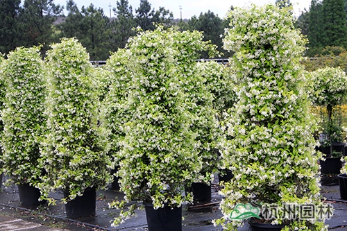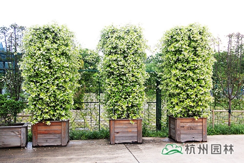 风车茉莉还可以通过不断修剪进行造型,枝条的柔软性和叶片的常绿性能带给人非常欢乐的园艺体验。