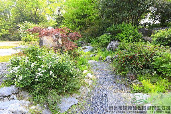 除了以上这些表现抢眼的植物,花园中心还有风格庭院和组团花境样本展示。风格庭院展示区由欧式田园庭院、西班牙风情庭院、岩石园、英式自然庭院、日式庭院、苔藓园、现代中式庭院、自然中式庭院、东南亚风情庭院、自然水景区等10个景观点组成。各具特色的它们,也在这个最美的季节展示出最美的风采。