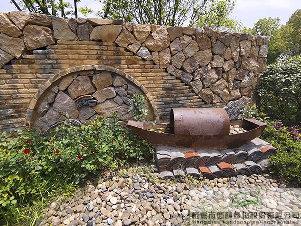 以旧青砖与多种元素搭配的景墙,