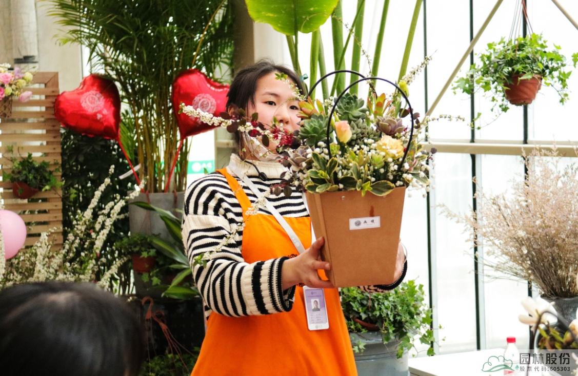 这些花材会像变魔术一样组合成一盆盆精美的手拎礼品袋鲜花,如花艺师手上演示的这一盆,是不是很期待呢?