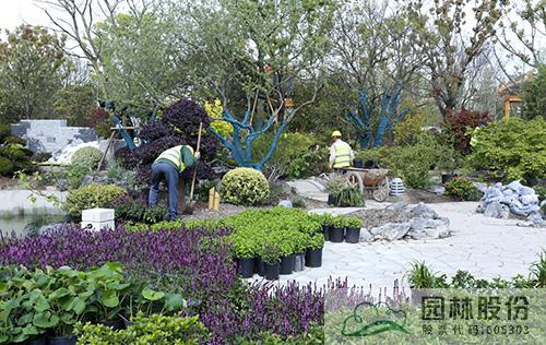 工地现场,施工人员正忙着进行放线、地形微调、植物种植、养护管理等工作,力争早日将美景呈现。截止目前,浙江园的山石水景、硬质铺装、主体建筑、大规格乔灌木种植等已基本完成,接下来主要进行下层空间的花境布置等工作。