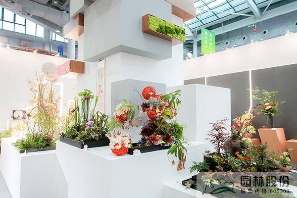 为展现对美好家园的期许,浙江馆内以森林环境与住宅有机融合的未来建筑为原型设计展架,墙面制作城市剪影的灯光,搭配盆花、插花等现代园艺作品,营造出人与自然和谐共生的生活场景,展示浙江人民对美好生活的向往和高质量发展建设共同富裕示范区的决心。