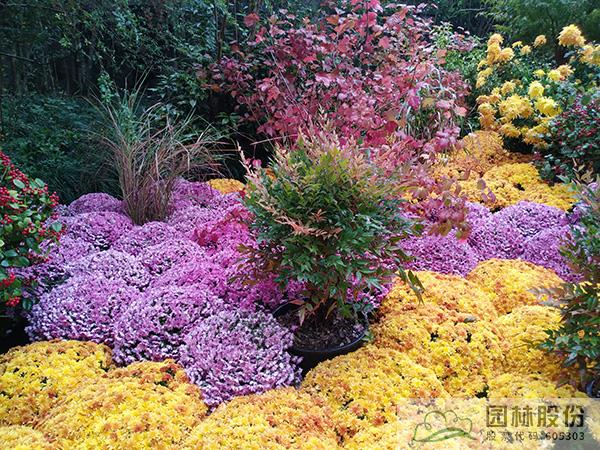本次花境景观中的主体虽是菊花,如球菊、蟹爪菊、乒乓菊、芙蓉菊等,但点缀其中的植物优良品种,使得整体花境更具独特魅力。
