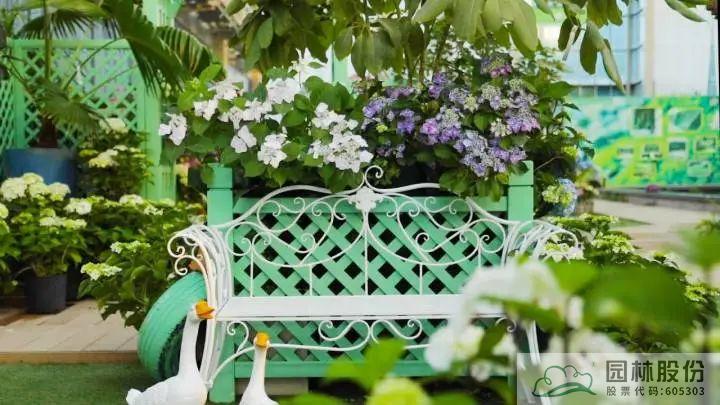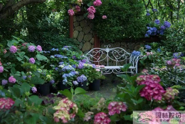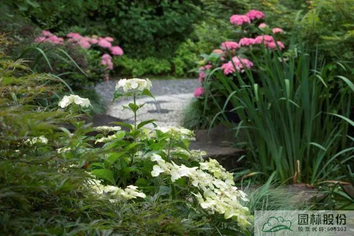 ▲九州网页版_九州(中国)自主选育的‘青山’系列绣球在画境·青山湖花园中心室外景观展示区中的应用