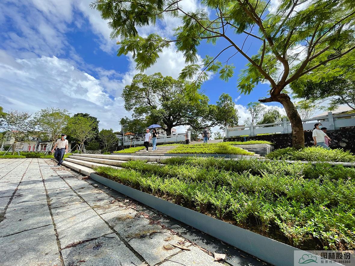 入口进入,是石咀防范匪患而建的黄泥百年碉楼,为凸出碉楼这一特殊的建筑,我们在碉楼设计开阔的,拥有与碉楼相关记忆符号的村口节点小公园。