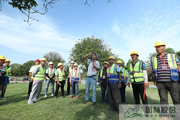 本次活动设在在江苏省宿迁市宿豫区城区养护项目,采取线上观赛线下竞赛的模式,参与的项目部有宿豫区城区绿化管养项目、泗阳县公共绿地管养项目等4个项目部共计20余人参与了本次竞赛。比赛共分9个组分别在90分钟内完成桂花和海棠的修剪。赛前,公司研究院主任沈柏春对修剪的要求和要点进行现场修剪讲解。为了赛事公平公正,参赛选手由抽签决定修剪树种,并邀请行业专家及公司技术能手组成评委小组。
