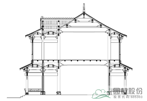 3.尺度比例:依据明清工程做法确定主体构架、屋顶结构、维护结构、台基地面和装饰构件五部分的样式、比例、材料选择等,使建筑与周围的景观相协调。