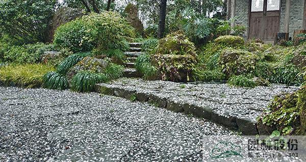 春日,飘零的樱花,是苔藓园独有的浪漫,