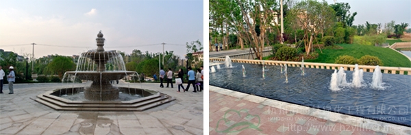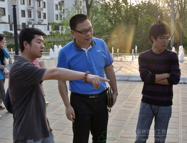 位于南京徐庄工业园内的紫金东郡居住区景观绿化工程刚刚俊工,项目经理场升超带领大家参观了现场,并针对工程中的园路铺装、植物配置、水景设置等进行了讲解。为了突出江南水乡的特色,工程中的水景元素运用比较多,从大门口的水池、喷泉雕塑,到不同风格的小型水景,使小区的整体景观变得更加生动,更为即将到来的炎炎夏日增添了几许清凉。